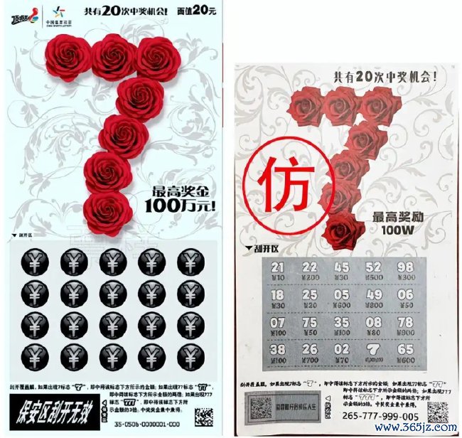 2.即开型体育彩票使用环保纸张和油墨,绿色、健康、易刮开;保安区和刮开区均有覆膜,票面印有防伪隐痛纹,图案无缺;票面印有体彩+顶呱刮绚丽及面值金额,刮开后的游戏区域有防伪底纹,且游戏绚丽、奖金标志了了易分辨。票背印有刊行机构、公益金孝敬金额和官方网址等信息。伪造、变造、仿造票均属行恶彩票,与正规即开型体育彩票存在履行互异,不得用于销售、兑奖或其他彩票相干手脚。